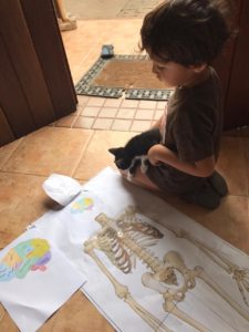 Mas, se você viu e fez, vocês curtiram brincar sobre o corpo humano, ou melhor, com o esqueleto na sua casa? Hiro, meu pequeno que nos conduz nessas brincadeiras, achou bem legal e mostrou para o pai os ossos que compõem o braço e as pernas. Ele ficou bem orgulhoso do que tinha aprendido. Hiro é meu filho, eu sou a Liria, diretora de pesquisa da Anamê, empresa mãe da Noeh.
