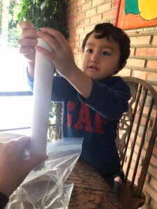 - Em primeiro lugar, começamos a falar sobre o sistema digestivo, para onde a comida vai… E, invariavelmente, caimos no cocô e no pum. Aproveitamos e ouvimos a música O Ar de Vinícius de Moraes e, Hiro caiu na gargalhada….rs