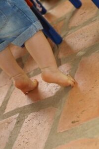 - Assim que o bebê começar a se levantar e andar, permita que ele caminhe descalço, dessa forma, ele fortalece seus músculos e tendões. A melhor opção é que o andar descalço seja feito em casa, pela segurança;