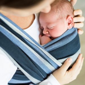 Nesse sentido, manter o baby embrulhado, como se fosse um pacotinho ou envolto como um casulo, pode simular o ambiente uterino. Outra dica fundamental é o uso de sling — um tipo de carregador de babê que o mantém em contato com a pele dos pais.