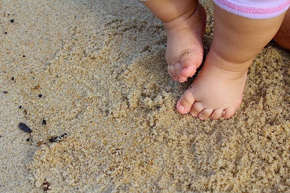 Já os pezinhos precisam se desenvolver para proporcionar o melhor caminhar. Uma das etapas do desenvolvimento é a formação do arco plantar — aquela curvinha que vemos no pé, sabe? Ela é muito importante para manter a sustentação muscular e tende a se formar depois que o bebê começa a andar. Enquanto a formação não está completa os pezinhos são mais fraquinhos, mais debilitados, por isso, nós observamos um pezinho mais plano, que, dependendo do grau e da causa, pode interferir no equilíbrio e ocasionar quedas.