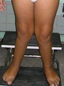Começando pelas perninhas, você já ouviu falar sobre genuvalgo? Esta condição existe quando os joelhos estão tão próximos que quase se tocam ou se tocam. Por outro lado, os pezinhos são afastados um do outro, de modo que é popularmente conhecida como pernas em tesoura ou em “X”. Geralmente, observamos o genuvalgo a partir dos 2 anos de idade. A princípio, a condição não requer tratamento, as perninhas vão se alinhando ao longo do tempo, conforme o corpinho vai se fortalecendo. Mas, enquanto isso não acontece, pode ser que prejudique a marcha da criança.