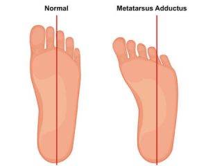 Também dizendo sobre o fortalecimento dos pezinhos. O metatarso aducto é quando os dedinhos apontam para o centro do corpo, como se estivessem voltados para dentro. Também uma condição comum no desenvolvimento muscular e ósseo dos pés. Esses dedinhos apontados pra dentro podem causar tropeções por encostar um pezinho no outro ou o pezinho na perna contrária.