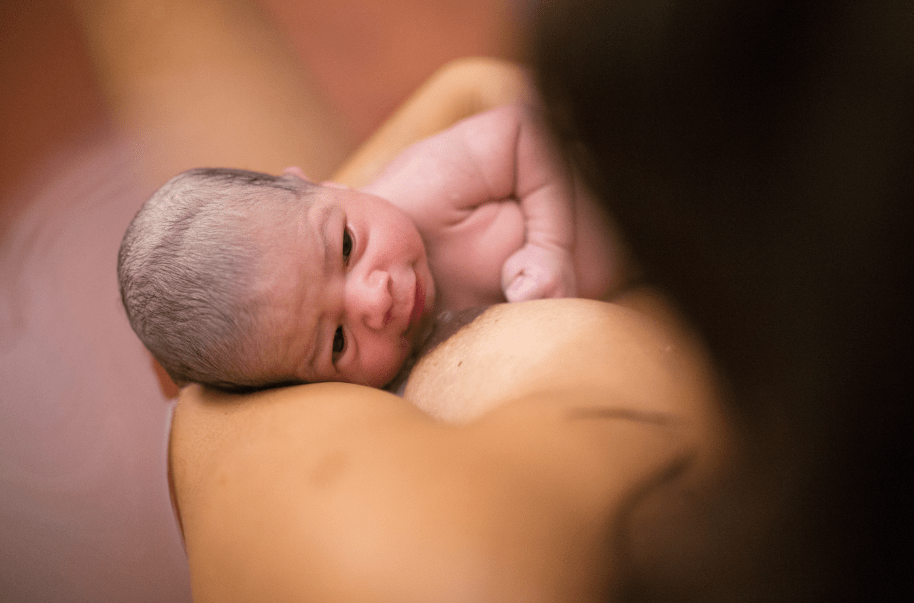 - Logo após o nascimento, o bebê deve ser colocado imediatamente em contato pele a pele com sua mãe. A não ser em caso de necessidade de assistência médica, os primeiros cuidados pediátricos devem ser prestados no colo da mãe, independente de via de parto (vaginal ou cesária). Este contato inicial possibilita o primeiro momento de conexão com a mãe, acalma o bebê, reduz o choro e estresse, regula os batimentos cardíacos e a respiração, mantém a temperatura, propicia a formação da flora (bactérias boas) do recém nascido, além de comprovadamente aumentar o sucesso do aleitamento materno;